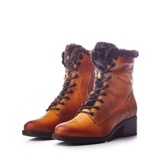 Introducing Alpinne, the leather lace-up ankle boot. The block heel makes them perfect for day to day wear – whilst the side zip provides easy access, meaning you can set the laces in the perfect place. The almond toe keeps the boot looking feminine. Complete with a leather sock, luxurious long faux fur lining and tongue to ensure they feel as cosy as they look. The artisan burnish detail adds a new element to the shoe.