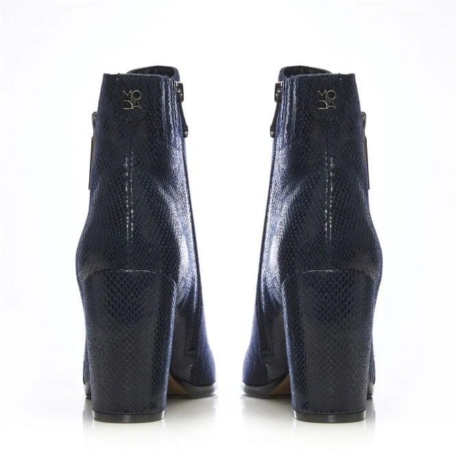Your new favourite wide fit boot. Amy features a stunning curved block heel with a metallic inner, the contrasting textures on the shoe add further detail whilst still leaving it effortless to style. Complete with a functional inside zip and a decorative outside zip. Style with leather trousers and a blouse.