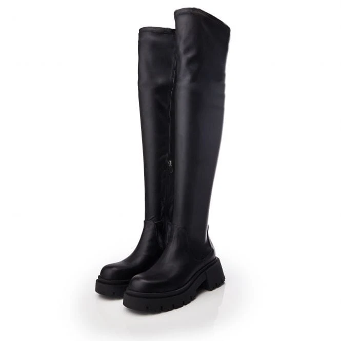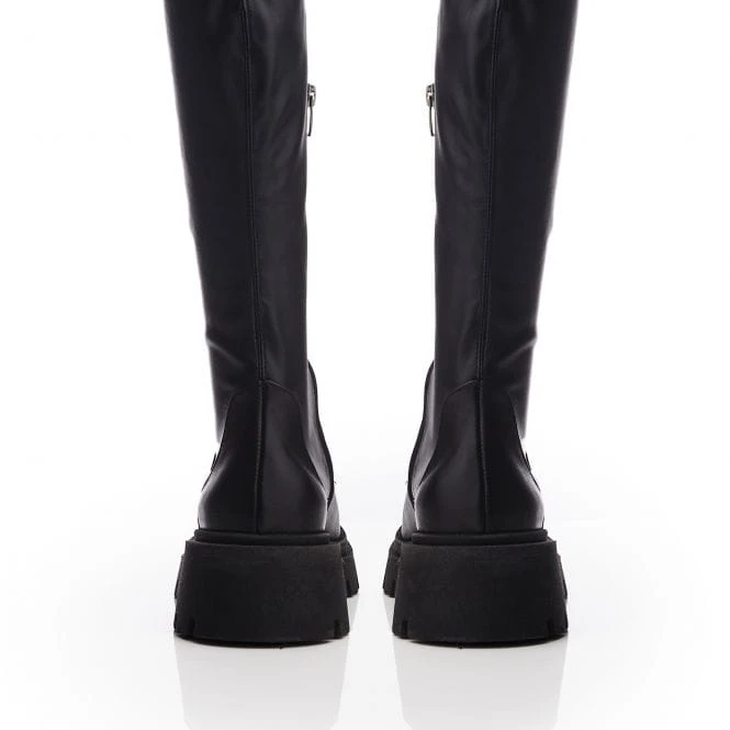 Picture yourself in Blaze, the newest black leather high boot from bsoleful. Featuring a chic combat boot aesthetic, this design features a chunky lug sole with a rounded toe-shape and a smooth, genuine leather body.