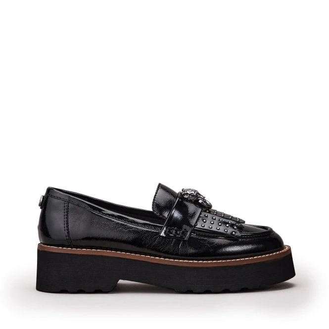 Elevate your everyday shoe collection with Evaleah. This must have modern loafer features our iconic Larry the Leopard and chunky lighweight sole, the leather finish adds to the luxe vibe. We love the contrast stitch detail and the classic fringe finish. Complete with leather lining, sock and arch support. Pair this slip on style with your favourite jeans a t shirt for a chic off duty vibe.