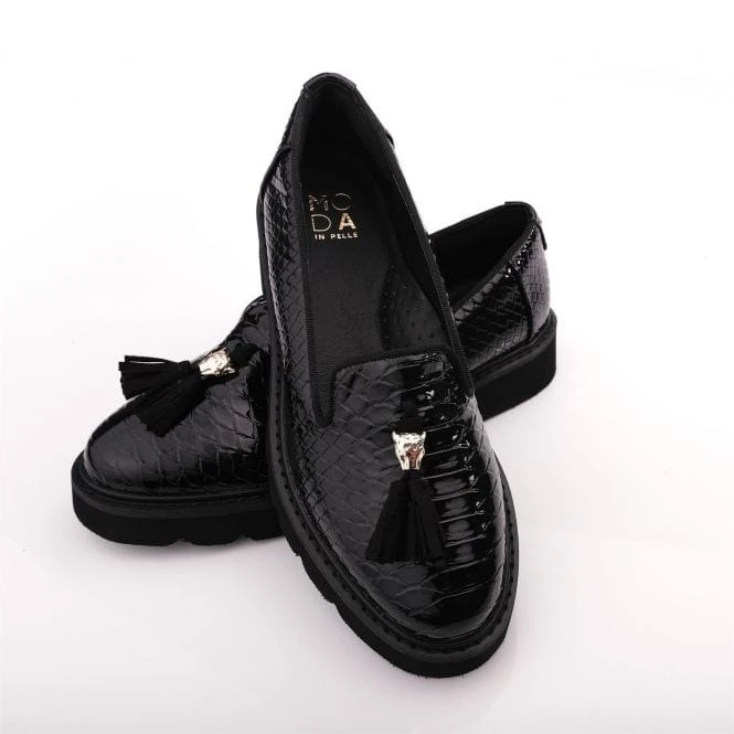 By the envy of all your friends with Evelyn. Featuring a chunky cleated sole for a modern look and tassel detail with Larry the Leopard keeper – the luxurious leather lining and padded sock adds to the experience of the slipper cut loafer. Perfect to pair with tailored trousers and a blouse.