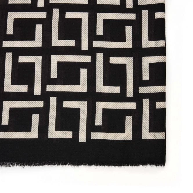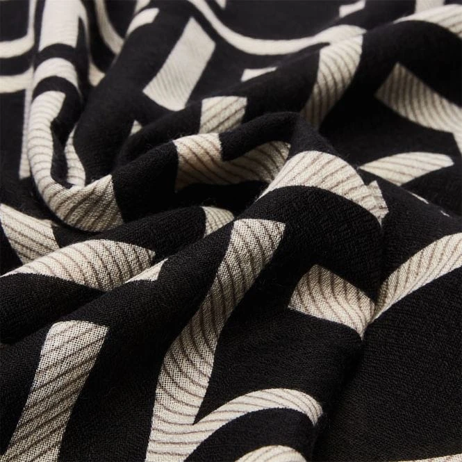 Get the look with the Geoscarf. Complete with contrasting print – perfect for adding a fresh look to your wardrobe. The lightweight nature makes it ideal for layering.