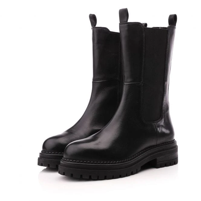 Look your best in our gorgeous Giala black leather boots. The elasticated sides let the boot move with you whilst also fitting your leg flawlessly. The chunky sole effortlessly adds height. Complete with a faux fur lining and leather sock to ensure they feel as good as they look – the heel tab helps with easy access.