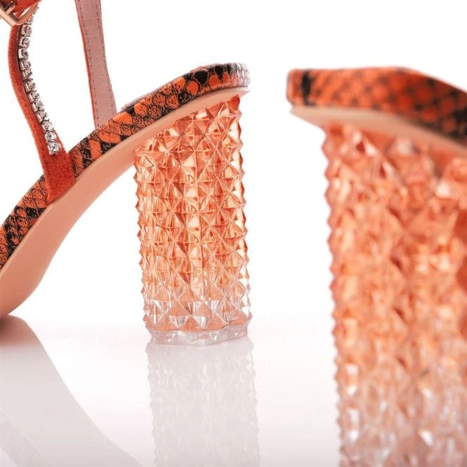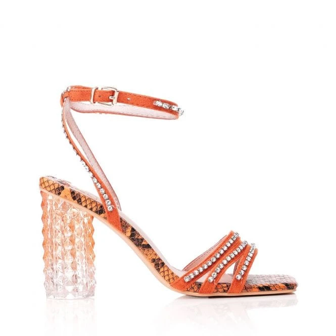 Make an impression in Madona. Featuring a stunning crystal heel, perfect for adding glamour to your attire. Complete with diamante feature straps and contrasting snakeskin detail – the ultimate wow shoe. The adjustable ankle strap allows for the perfect fit.