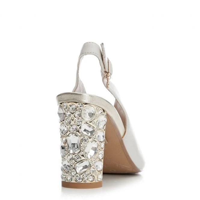 Make an impression in Meloni our stunning leather peep-toe slingbacks. The stunning deep V elongates the leg, whilst the adjustable strap means you can get the perfect fit. We love the jewel feature heel, perfect for adding a touch of luxury to your wardrobe. Style with your occasionwear.
