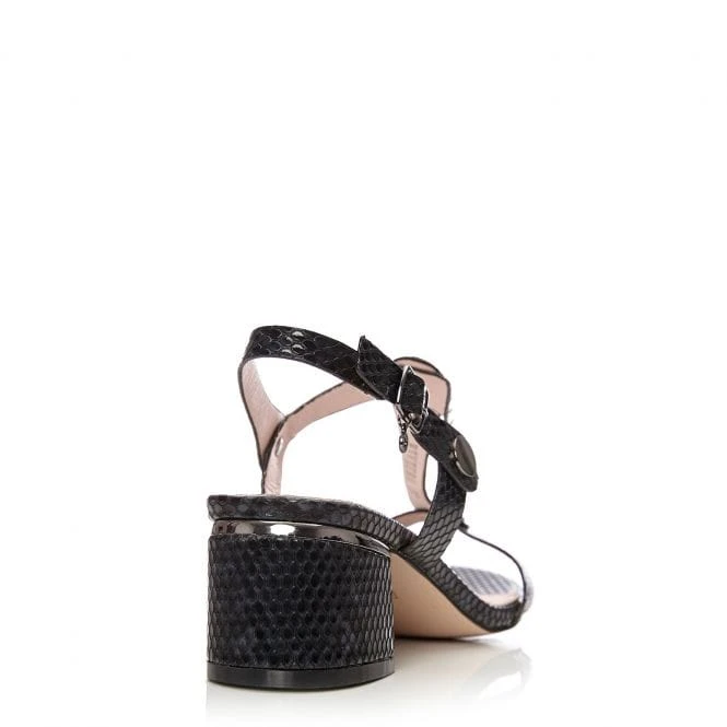 Reach new fashion heights in our stunning black lizard slingback Riviera sandal. The shape of the sock makes it invisible when the shoe is on for a super sleek look. The wearable block heel makes them ideal for day or night, whilst the H-bar strap keeps your foot securely in place and adds extra detail. The metallic details add to the luxe vibe. Style with a cute summer dress. Â