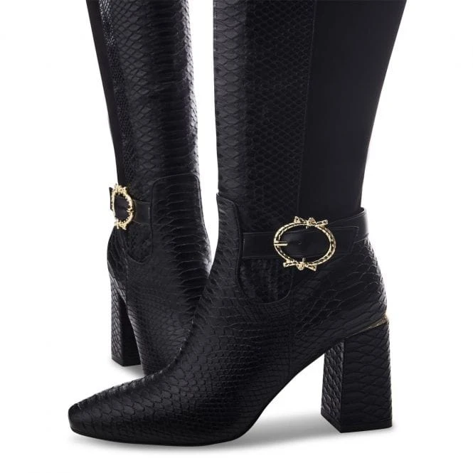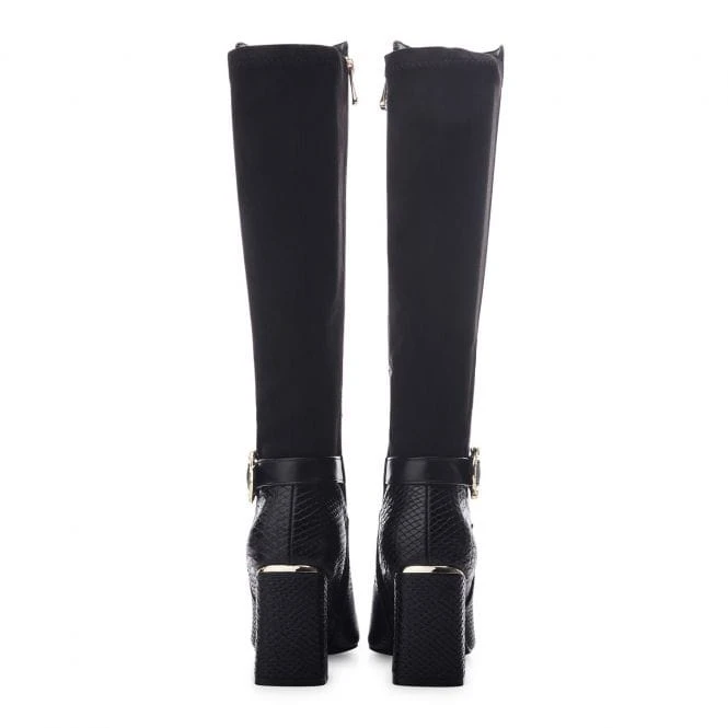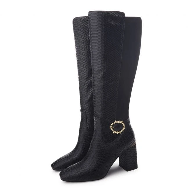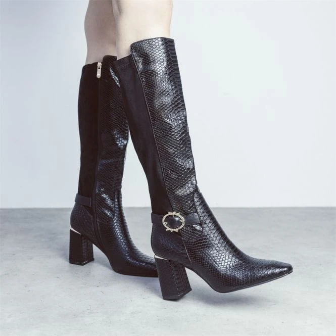 Serve up new looks with Saretta. Sitting below the knee, this long boot features a wearable block heel and buckle trim, complete with a powerful pointed toe. The faux fur lining and soft leather sock ensure it feels as premium as it looks.