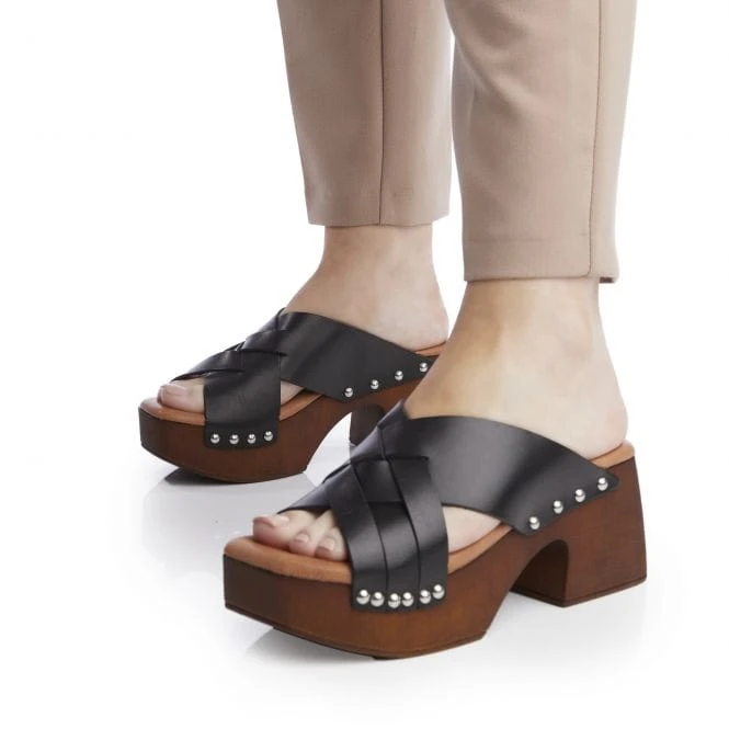 Stay on-trend with Saffron from the Shoon collection. This clog-style sandal features leather crossover straps and metallic studs. Complete with a fully padded sock for a comfortable wear. Perfect to pair with your warm-weather wardrobe.