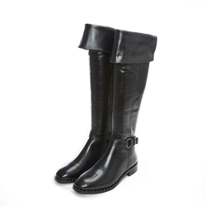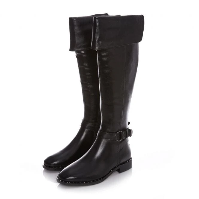 Take your look to the next level with Tori. This beautiful boot sits over the knee, whilst the elastic back allows the shoe to move with you and flawlessly fit your leg. Complete with pin stud rand detail and a cosy faux fur lining.
